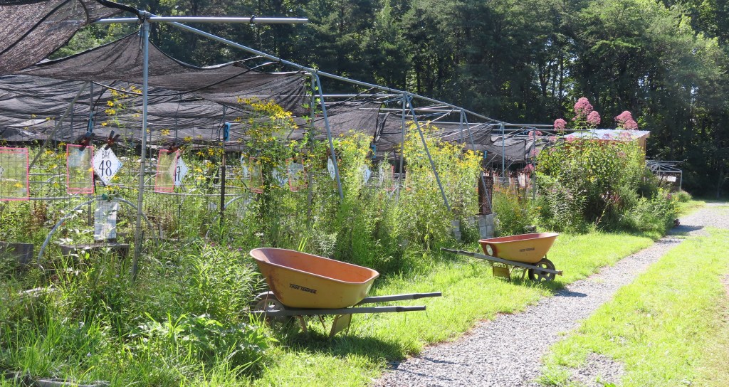 Tucked in a sliver of land in a county park, Earth Sangha’s Native Plant Nursery stands out as a leader in the conservation of native plants. I helped staff and volunteers pull invasive stiltgrass and porcelain berry at Rutherford Park. Then I visited the nursery to talk with Conservation Manager Maddie Bright (now Executive Director) about other recent projects. Here’s what I learned, as reported in the September issue of Plantings.